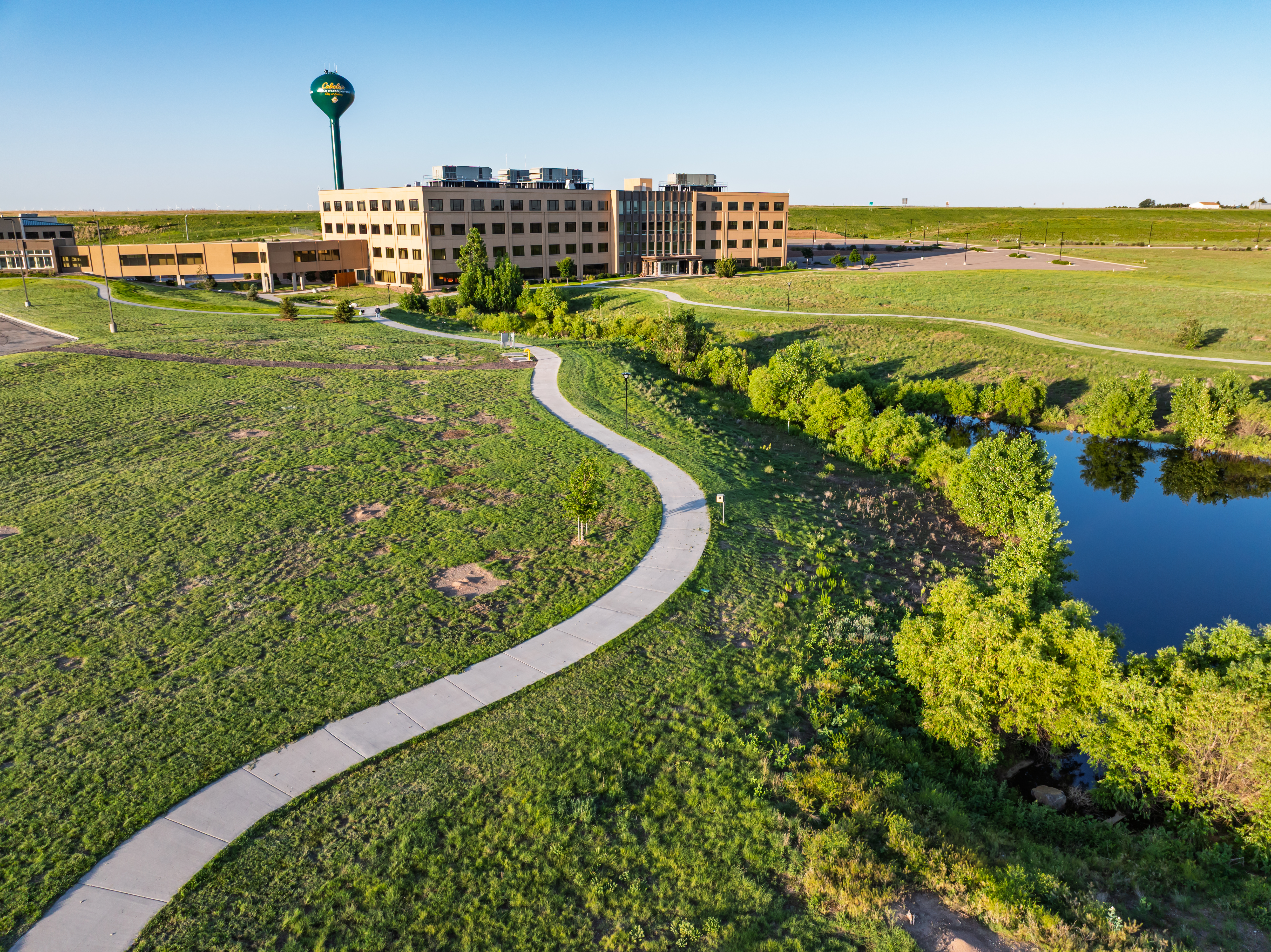 Completed in 2014, Building 2 offers a sleek, modern workspace with open floor plans, solar-shaded windows, and LED lighting designed to support collaboration and well-being.