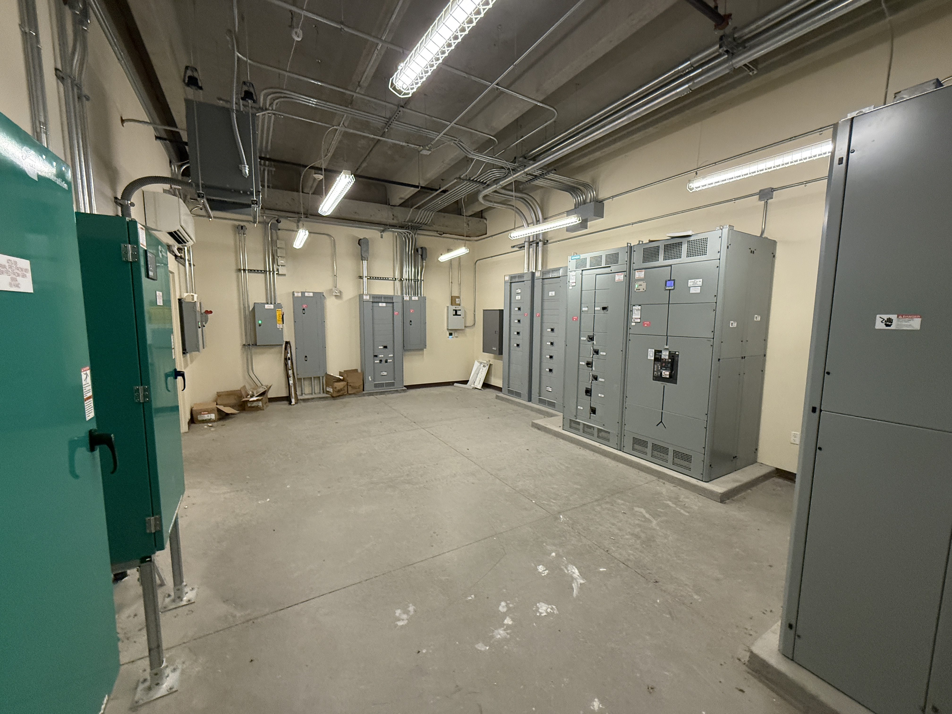 Building-wide HVAC ensures consistent comfort, energy efficiency, and cooling redundancy for sensitive equipment and large workspaces.
